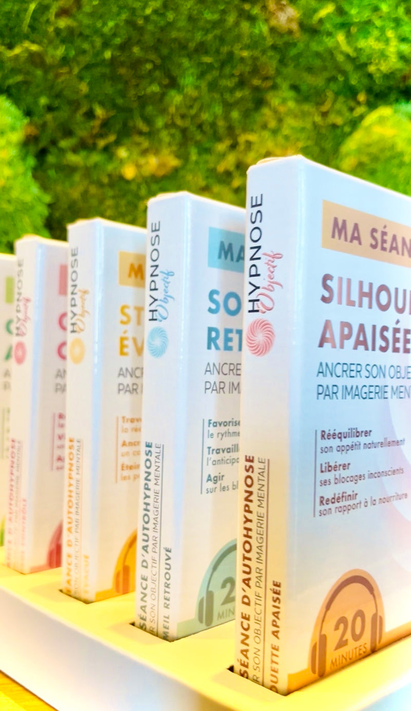 Les box HypnoseObjectif sont le format tangible des séances audio disponibles sur le site.